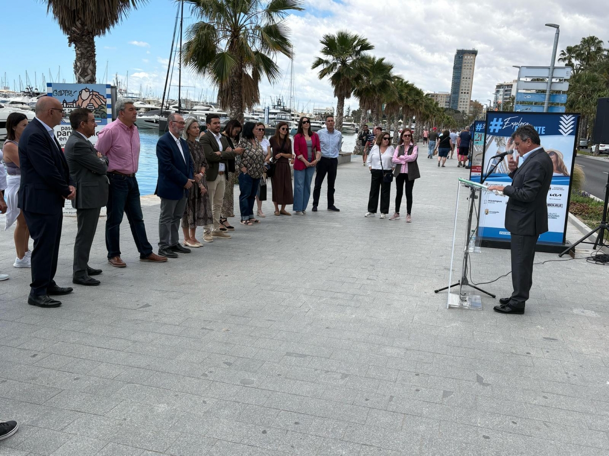 En esta línea de trabajo, ayer se presentó en la capital la imagen corporativa del Año Altamira, que desde hace semanas puede verse en el tablón de anuncios del Ayuntamiento. Ese diseño lo podrán ver hasta el día 16 de este mes miles de personas que, sin duda, pasarán por el paseo del puerto de Alicante, donde se ha instalado la exposición Explora Alicante, una iniciativa del grupo editorial Prensa Ibérica que tiene como objetivo explorar la provincia a través de iniciativas como la de El Campello o las que aportan otros municipios con sus tradiciones, actividades, gastronomía y lugares emblemáticos dignos de visitar. A la inauguración asistieron ayer el alcalde, Juanjo Berenguer; la primera teniente de alcalde y diputada provincial, Lourdes Llopis, y el concejal Cristian Palomares.