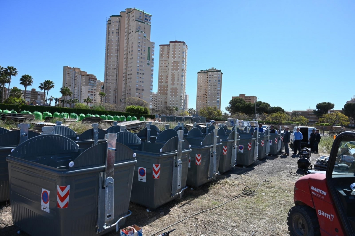 Las primeras 200 unidades ya han llegado y esta misma semana los operarios comenzarán a instalarlos, comenzando por la zona de Muchavista, motivo por el cual el acopio de materiales s e está realizando en un solar de propiedad municipal sito en la calle Figuera, donde las piezas que llegan por separado se montan para dar forma a los nuevos contenedores. Después se llegará al casco urbano, y se almacenarán los contenedores junto al Polideportivo El Vincle como paso previo a su instalación.