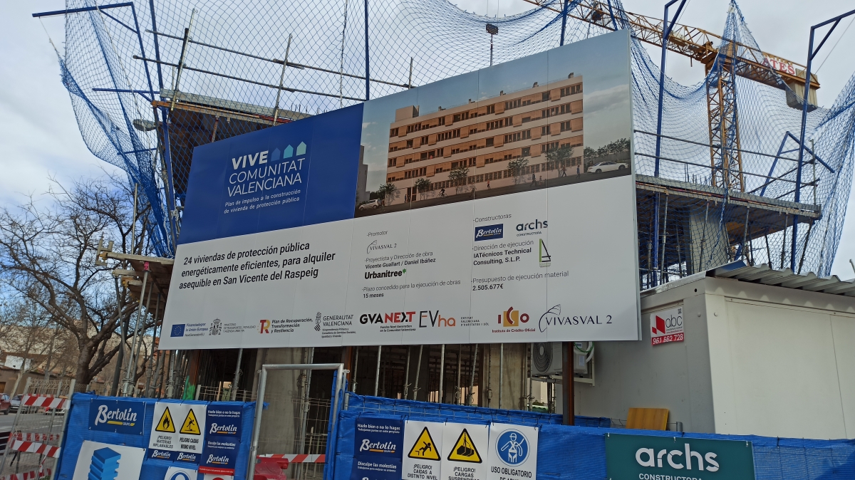 Actualmente, en San Vicente del Raspeig se están construyendo 95 viviendas de protección pública. De ellas, 17 formarán parte del parque público autonómico gestionado directamente por la Generalitat, mientras que el resto corresponden a promociones protegidas impulsadas mediante colaboración público-privada.