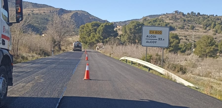 XIXONA. La Vicepresidencia Tercera y Conselleria de Medio Ambiente, Infraestructuras, Territorio y de la Recuperación avanza en los trabajos de mejora de seguridad vial que implican la renovación estructural del firme de la carretera CV-800 de Jijona y afronta la fase final, tras una pausa motivada por las pasadas fiestas, que permitirá que en el mes de mayo finalicen los trabajos de renovación del aglomerado.