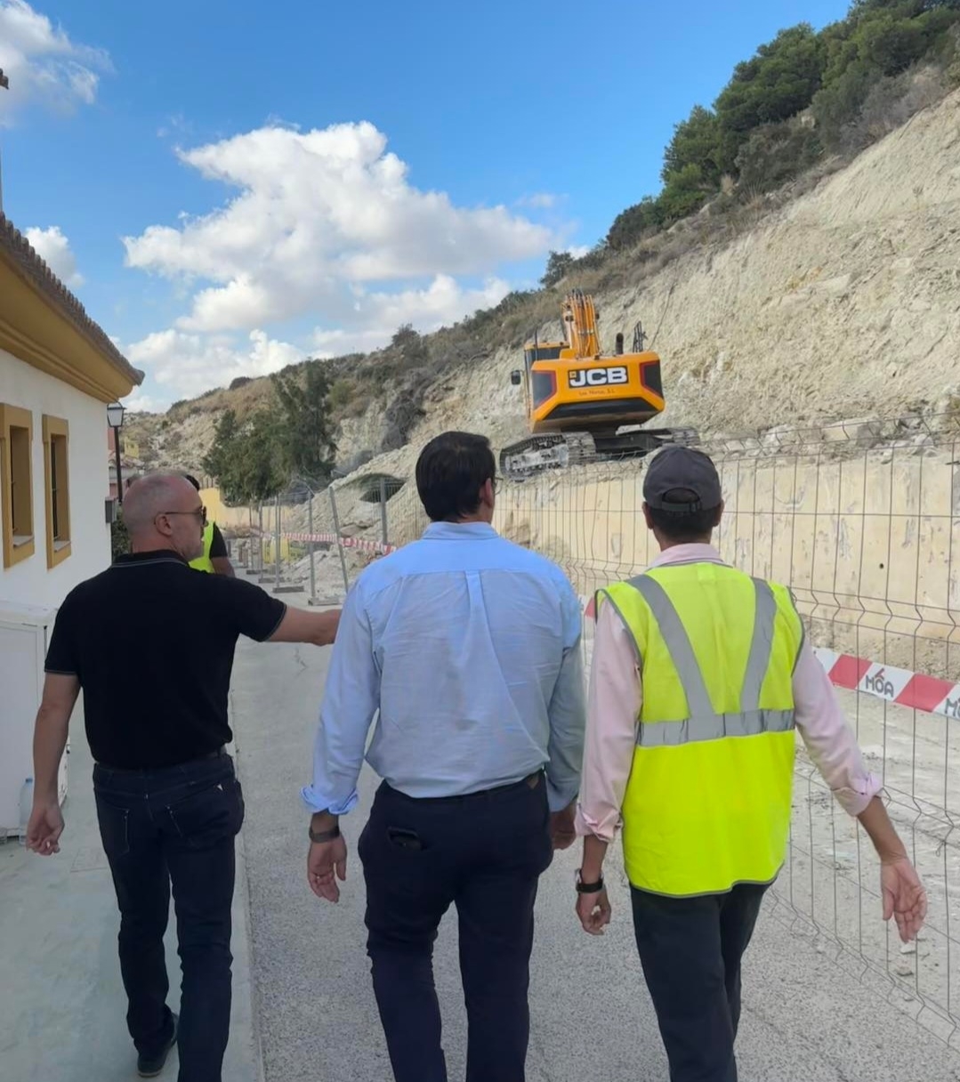 MUTXAMEL. Las obras de los Taludes en la urbanización Bonalba en Mutxamel avanzan según los plazos previstos. Así lo han podido corroborar el alcalde de la localidad, Rafael García, y el concejal de Obra Pública, Vicente Gomis, tras visitar los trabajos.