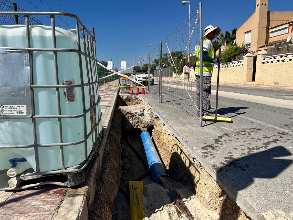 Las brigadas de obreros ya están actuando en la nueva tubería de la calle Cocentaina, que registraba roturas sobre todo en verano, cuando en la zona llegan a juntarse miles de personas. Las averías generaban molestias y quejas vecinales, y había que poner fin al problema.