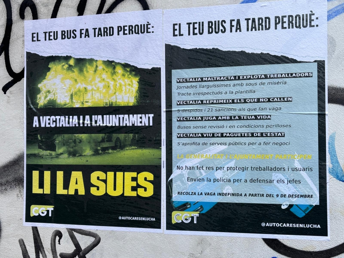Recordar que estos servicios se están prestando con contratos de emergencia hasta las nuevas licitaciones. Se trata de servicios cuya responsabilidad depende de la Generalitat, han sido adjudicados a la empresa Vectalia y desde la CGT aseguran que "cerca del 40 % de la plantilla tiene contratos temporales, consecuencia directa de los contratos de emergencia, lo que convierte a estos trabajadores y trabajadoras en personas especialmente vulnerables a las presiones directas e indirectas ejercidas por la empresa". Reprochan al consistorio que "a pesar de ello, se posicionan claramente del lado de la Generalitat y de la empresa, calificando reiteradamente este conflicto como un problema privado entre empresa y trabajadores".