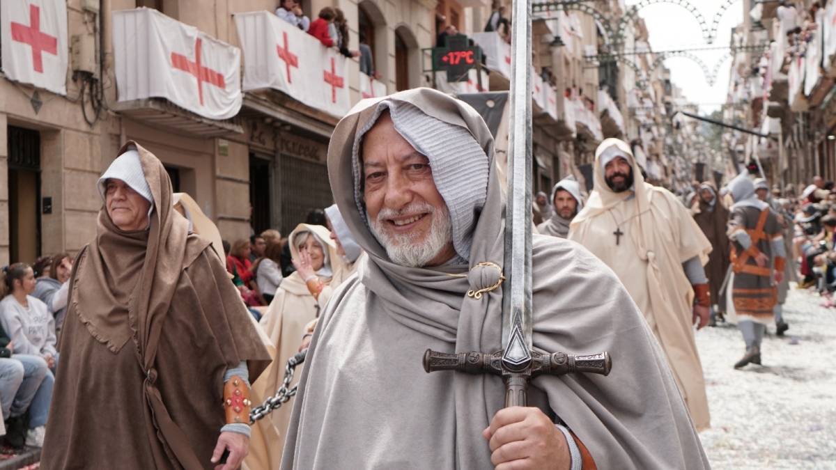 Tras el acto de la Diana, que desde aproximadamente las 5.50 horas ha recorrido las calles del Centro, la mañana ha sido el momento de las tropas de la cruz, que actualmente suma más participantes que el bando moro, alrededor de 7.000 frente a los 6.000 de las filaes de la media luna. Precisamente, una de las cuestiones en las que viene trabajando tanto la Asociación de San Jorge como las filaes es el tema de la participación, teniendo en cuenta que cada año se multiplica pero el trayecto y los horarios siguen siendo los mismos que cuando la participación era mucho menor. El desfile cristiano suele durar en torno a las cuatro horas, y el moro alrededor de cinco ya que su cadencia es más lenta, por lo que el reto es que no aumenten los tiempos, compactando los grupos festeros y ballets para agilizar su desarrollo.
