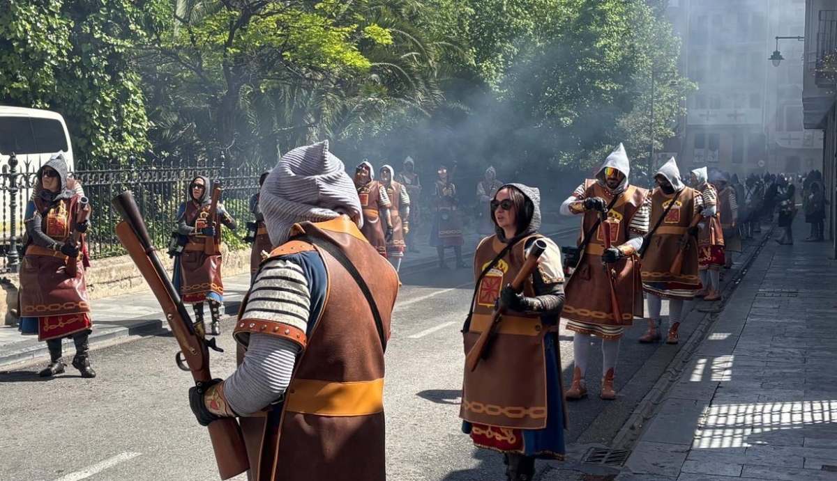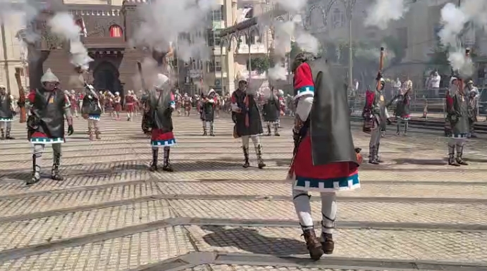 Este año cabe destacar que los dos estafetas, que son quienes llevan el mensaje pidiendo la rendición del bando contrario, están por primera vez a cargo de dos festeras Almudena Pastor, de la filà Marrakesch por la mañana, y Sandra Terol de los Andaluces por la tarde. Tras no aceptar la rendición, llegan los parlamentos de las Embajadas, que al no fructificar dan paso a las batallas de arcabucería.