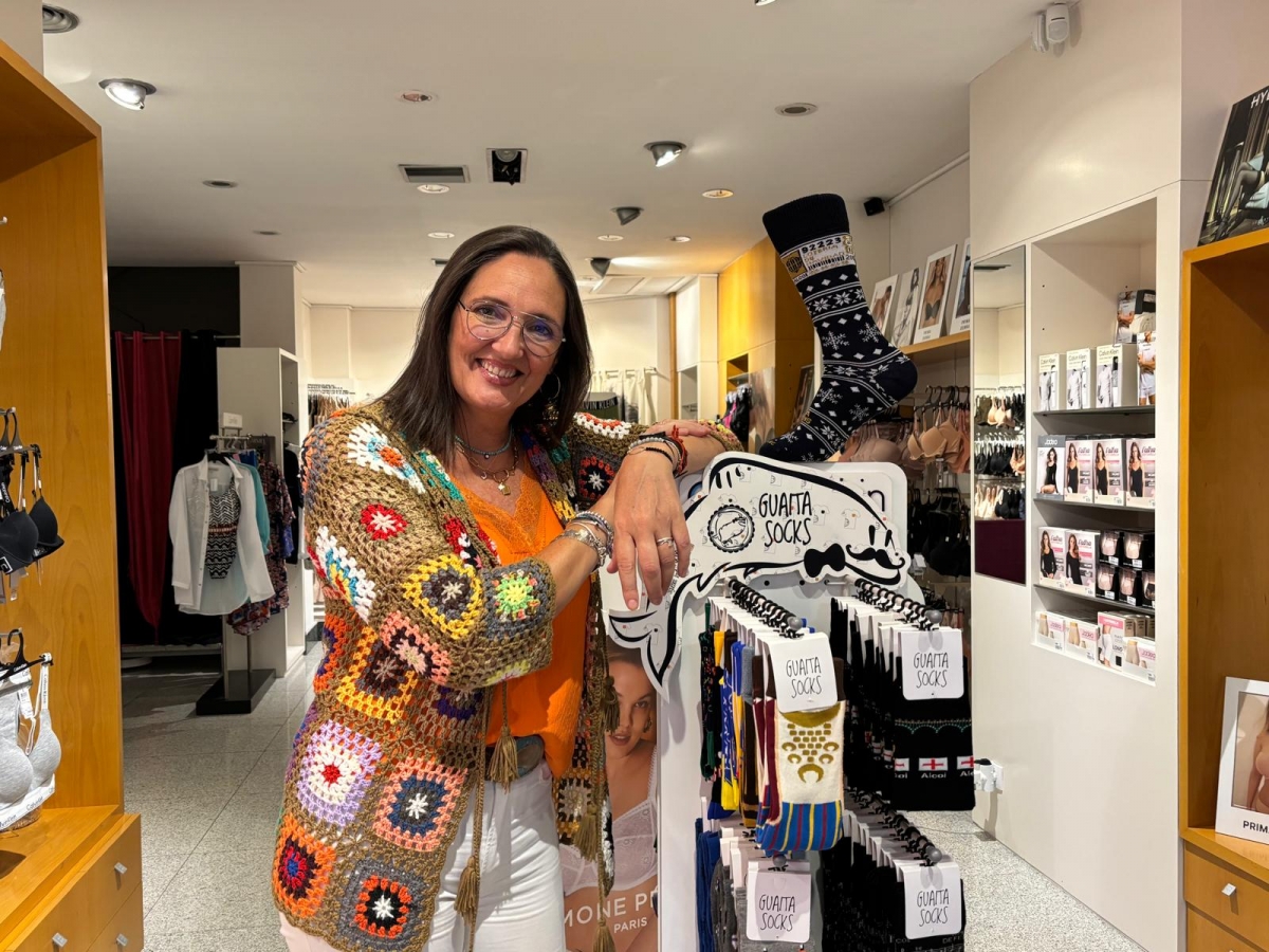 ALCOY. María José Francés Tomás, profesional que regenta un establecimiento de lencería y ropa interior en Alcoy especializada en tallas y copas, decidió en 2019 dar un paso más y lo hizo apostando por los calcetines personalizados con un motivo tan alcoyano como los pajes de la Cabalgata.