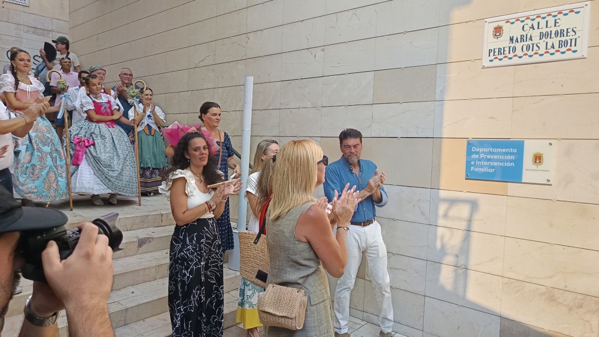 ALICANTE. El Casco Antiguo de Alicante se ha emocionado este jueves durante la inauguración de la calle dedicada a la memoria de María Dolores Peretó, conocida como 'La Boti', en las inmediaciones de la Plaza del Carmen. El acto ha constituido el prólogo de las fiestas tradicionales en honor a San Roque, copatrón de Alicante, que se prolongarán hasta este domingo 17 de agosto.