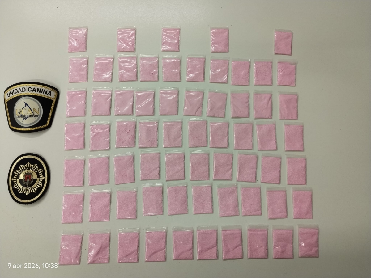 Los agentes trasladaron al pasajero identificado a un cuarto de la estación de autobuses y localizaron en el interior de uno de los bolsillos de su mochila un envoltorio de plástico con 5,42 gramos de la sustancia conocida como ‘tusi’ (cocaína rosa) y otro de 5,90 gramos de marihuana.