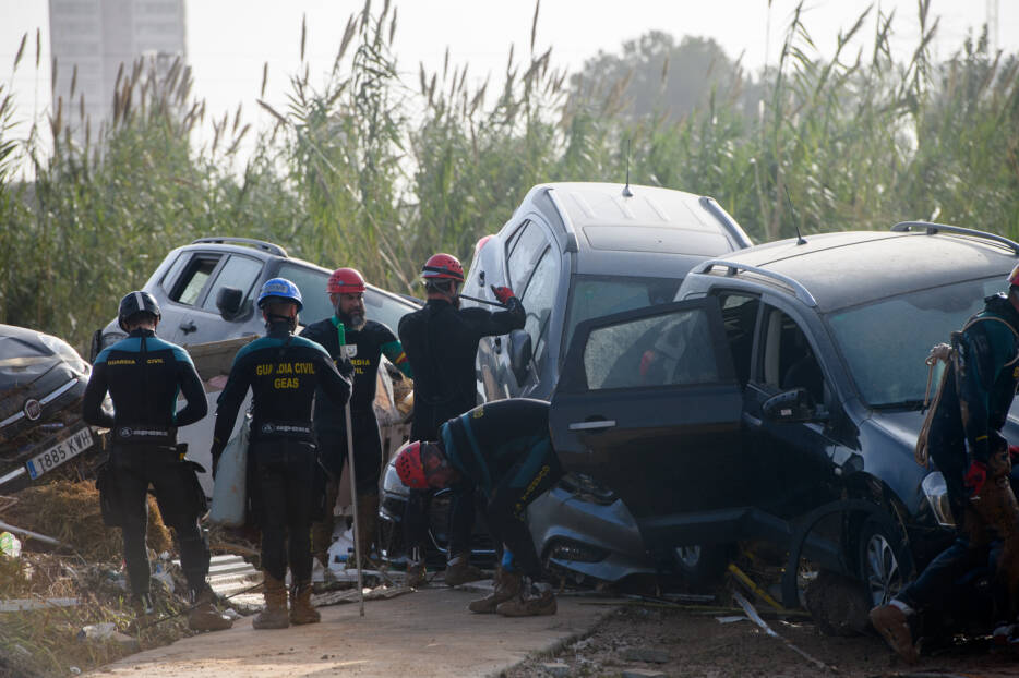 PAIPORTA(VALENCIA) (EFE). Agentes del Grupo Especial de Actividades Subacuáticas de la Guardia Civil (GEAS) continúan este sábado con la búsqueda de desaparecidos en la localidad valenciana de Paiporta, donde acceden a los vehículos que acabaron dentro de los agujeros abiertos para construir nuevos edificios en la zona nueva del pueblo.