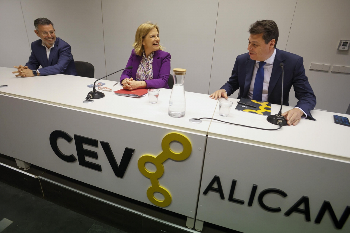 ALICANTE.- La sede de la Confederación Empresarial de la Comunitat Valenciana (CEV) en Alicante ha sido este martes el escenario de un encuentro tenso pero constructivo entre la delegada del Gobierno, Pilar Bernabé, y la junta directiva de la patronal, encabezada por César Quintanilla. La reunión ha servido para confrontar dos realidades opuestas: la de un Ejecutivo que saca pecho por sus planes de futuro y la de un empresariado que aporta datos de una "infrainversión estructural" que, a su juicio, dura ya una década.