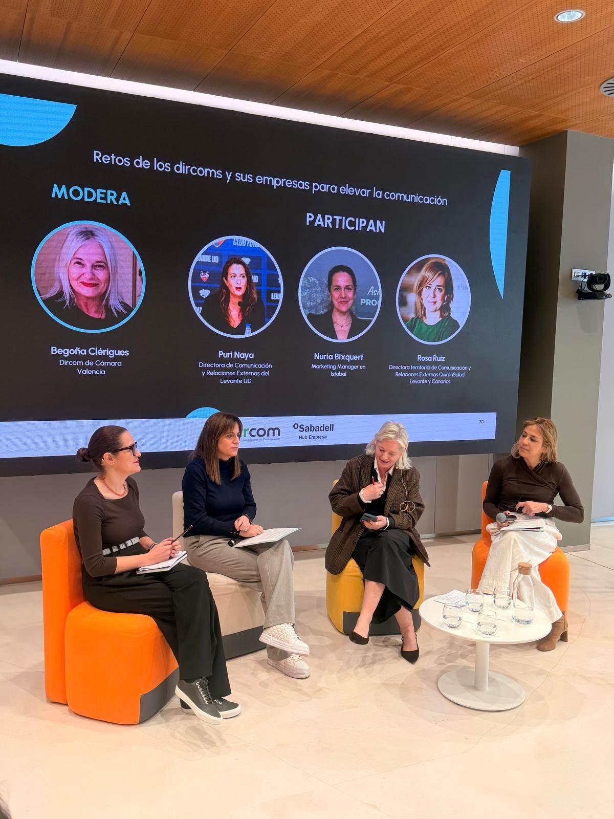 En el debate han participado Puri Naya, directora de Comunicación y Relaciones Externas del Levante UD; Nuria Bixquert, directora de Marketing y Comunicación de Istobal; y Rosa Ruiz, directora territorial de Comunicación y Relaciones Externas de Quirónsalud Levante y Canarias y vicepresidenta de Dircom CVM.