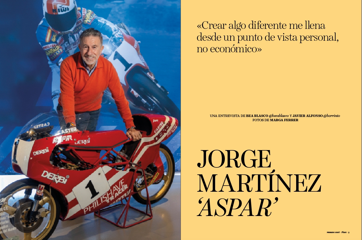 «Después de tantos años, lo que me mueve es la pasión», subraya el alcireño. Desde los doce años, Aspar era un gran aficionado a las motos y no se perdía ninguna carrera. A los dieciséis comenzó a correr y, un año más tarde, ya conquistaba su primer campeonato: la Copa Bultaco Streaker (1979). A partir de entonces creció su palmarés hasta convertirse en el cuarto piloto español más laureado, solo por detrás de Ángel Nieto, Marc Márquez y Jorge Lorenzo. Aquel niño que no se perdía ninguna carrera sigue ganando títulos mundiales. Solo que ahora lo hace desde los boxes.