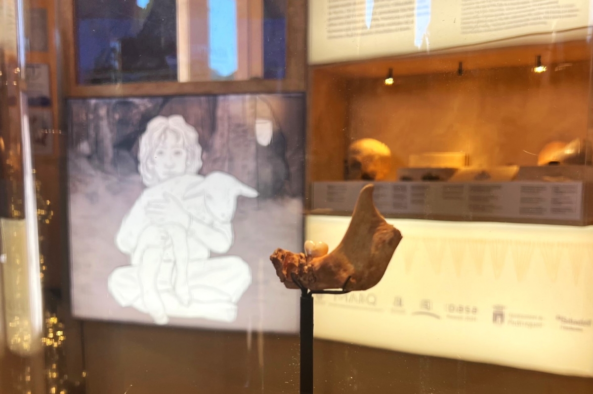 El recorrido expositivo se articula en torno a una cuidada selección de una treintena de piezas arqueológicas, entre las que destacan un cráneo utilizado como reliquia, un conjunto excepcional de 17 puntas de flecha, posiblemente pertenecientes a un carcaj, así como un gran recipiente cerámico de uso multifuncional y, como pieza central, la mandíbula de un infante de entre siete y ocho años con claras evidencias de manipulación antrópica tras la muerte. Se trata del primer caso documentado de canibalismo neolítico en la Comunitat Valenciana, cuyo estudio ha permitido identificar distintos tratamientos del cuerpo que los investigadores interpretan como prácticas rituales ligadas al duelo y a las creencias funerarias. Y es que, según han explicado los comisarios, las marcas observadas no responden ni a un contexto de hambre ni a un episodio de violencia, sino a lo que definen como endocanibalismo selectivo, una práctica simbólica que implicaría la ingesta ritual de restos humanos pertenecientes al propio grupo.