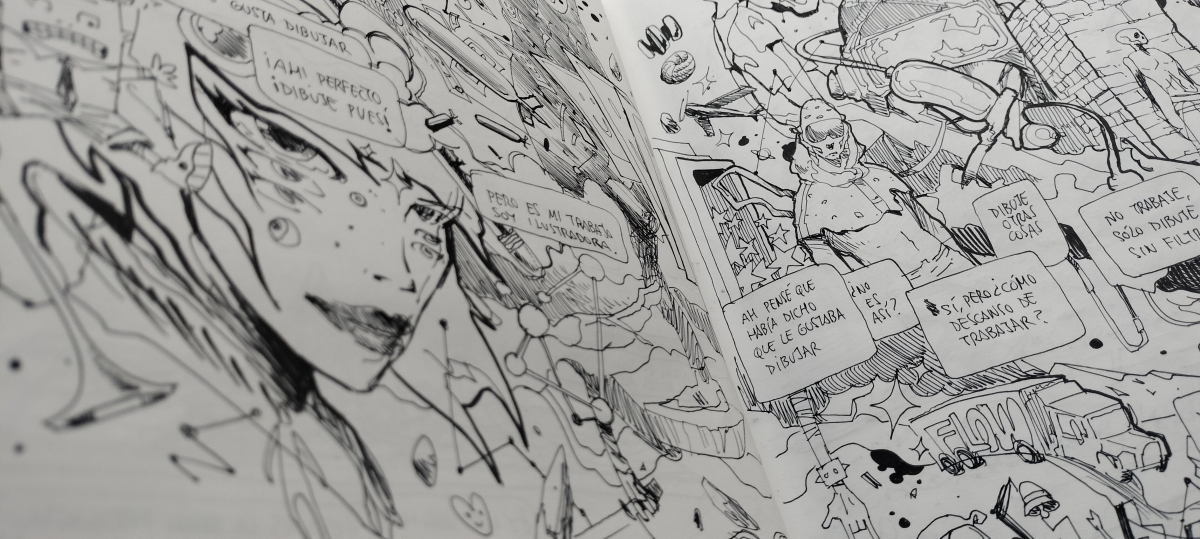 Precisamente, el cómic nace como una herramienta para superar el bloqueo artístico, enfrentándose al folio en blanco sin juicio ni expectativas, una obra reflexiona sobre el scroll infinito y cómo el consumo digital puede erosionar la creatividad, vaciar el tiempo y alejarnos de procesos más conscientes.