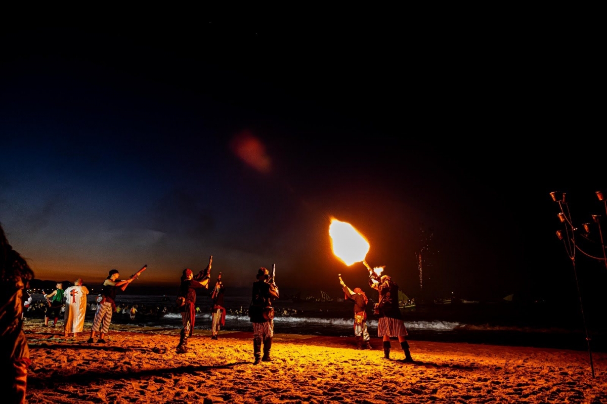 Llegada la medianoche, empezará la noche mágica del Desembarc, un espectáculo de luces, fuegos, música y arcabuces en la playa centro que recrea los hechos acontecidos hace 487 años frente a la costa vilera. 25 embarcaciones sarracenas llegarán a tierra tras la indicación del Emisario del Rey Moro.