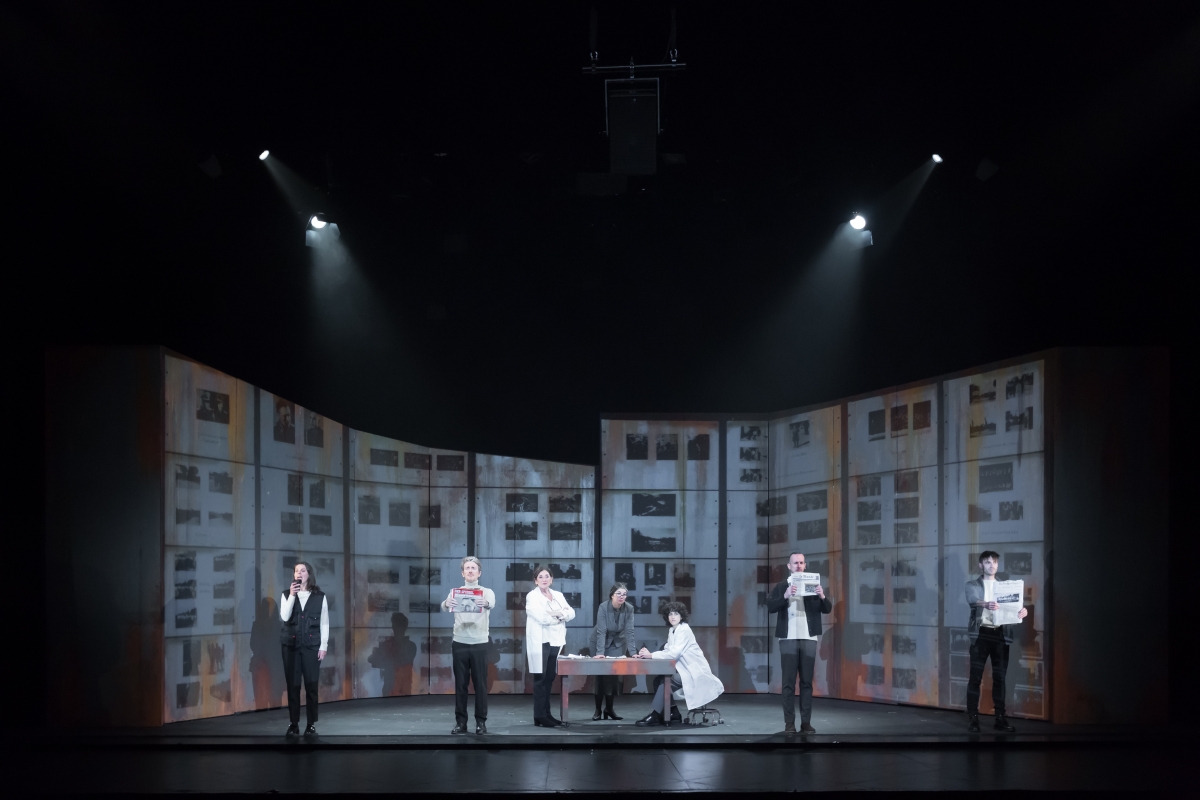 Lo hacen con una obra coral y musical, que se apoya en las imágenes para contemplar la historia de estos oficiales desde un presente desde el que se sigue sintiendo la tragedia “demasiado actual”. Para el actor Nacho López, la pieza habla de “cómo la gente normal que te cruzarías por la calle puede llegar a hacer grandes atrocidades”. Lo hace poniéndoles cara a los oficiales de Auschwitz a través de las fotografías que se comparten sobre sus actividades de ocio, y en un momento en el que la historia está más latente que nunca: “Esta obra es más importante que nunca por las situaciones de guerra en las que vivimos. La sociedad parece que avanza, cuando en realidad retrocede y es muy triste interpretar Blaubeeren en un momento en el que está sucediendo un genocidio en Gaza”.
