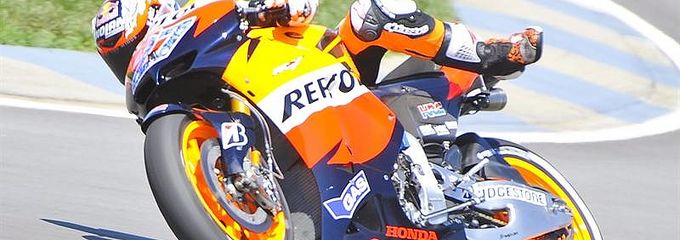 La cuarta plaza de los entrenamientos oficiales acabó siendo para Dani Pedrosa (Honda RC 212 V) aunque en su caso ya con un segundo de diferencia respecto Stoner, lo que le aleja de cualquier opción real de luchar por la victoria, máxime por el impresionante ritmo que ha marcado el australiano a lo largo de todos los entrenamientos que ha realizado.