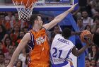 La primera parte fue un continuo 'tira y afloja'. El primer duelo anotador lo tuvieron Nik Caner-Medley, por los locales, y Pedro Llompart, por los visitantes, pero el primero que pudo romper el choque fue Kyle Singler.