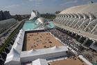 VALENCIA (VP). El estanque del Museo Príncipe Felipe ya ha sido convertido en pista hípica, gracias a 2.500 toneladas de arena de última generación y al trabajo de decenas de operarios durante toda la semana.