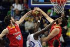 69 - Francia (22+16+10+21): Batum (9), Albicy (8), Traore (16), Pietrus (2) y Diaw (5) -equipo inicial- Seraphin (18), Kahudi (1), De Colo (10) y Tchicamboud.