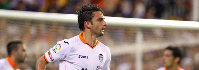 - Postiga celebra su gol frente al FCB / Foto: Valencia CF