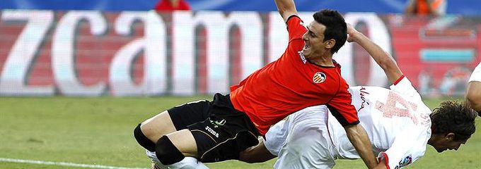 La formación valencianista, con Sergio Canales y Soldado ya también en el campo, se fue así a por el partido y el Sevilla tuvo que recomponerse, y más al perder por expulsión al francés Julien Escudé al hacer penalti sobre Aduriz.