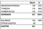 En relación a sus cuentas anuales, las tres líneas de ingresos más representativos sobrepasan la cifra de los 100 millones de libras para la temporada pasada, rozando la perfección de los tres tercios por línea. No dependiendo en exceso de ningún ingreso en concreto.