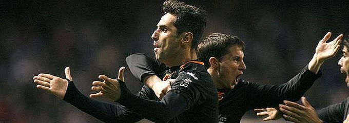 - Jonas celebra el primer tanto del Valencia en Riazor