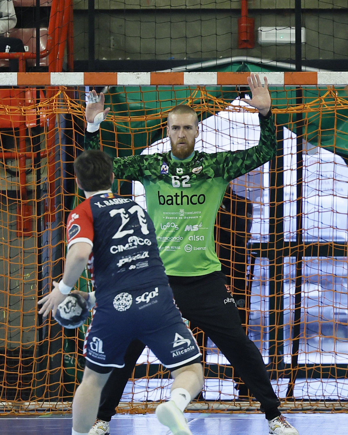 TORRELAVEGA. El portero brasileño del Bathco BM Torrelavega Leo Tercariol se vistió de héroe en la última jugada del partido, parando un siete metros al jugador de Alicante Xabier Barreto, lo que le ha servido a su equipo para volver a conseguir dos puntos tras la derrota del fin de semana pasado en Logroño.