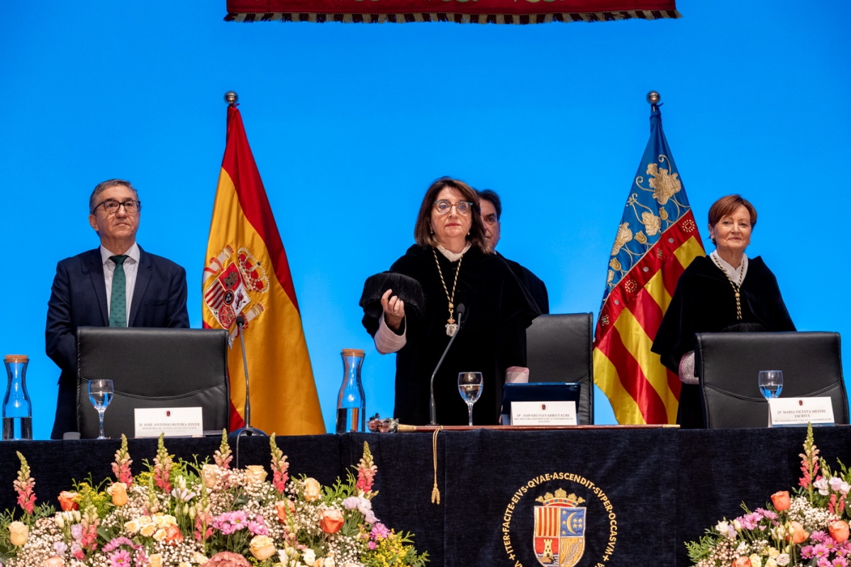 La rectora de la UA, Amparo Navarro, ha señalado en su discurso que el arranque de este curso coincide con que se esté "a punto para tener, al fin, el ansiado plan plurianual de financiación", y ha defendido la política de becas y la necesidad de facilitar el acceso a la vivienda de los jóvenes, cuestión ésta última que debería ser "cuestión de Estado".