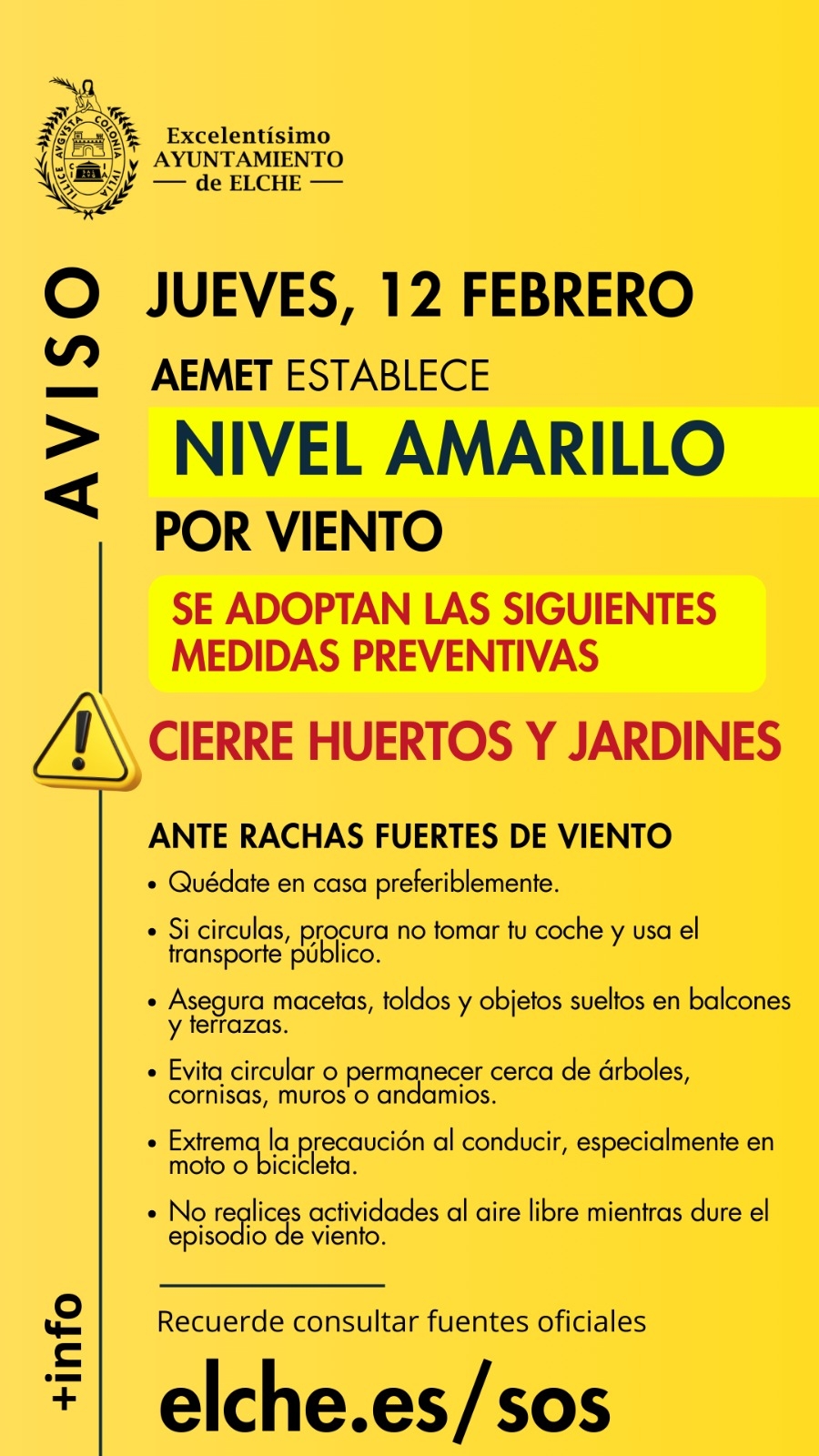 Se recomienda quedarse en casa preferiblemente, no utilizar el coche, sino el transporte público, asegurar macetas, toldos y objetos sueltos en balcones y terrazas.