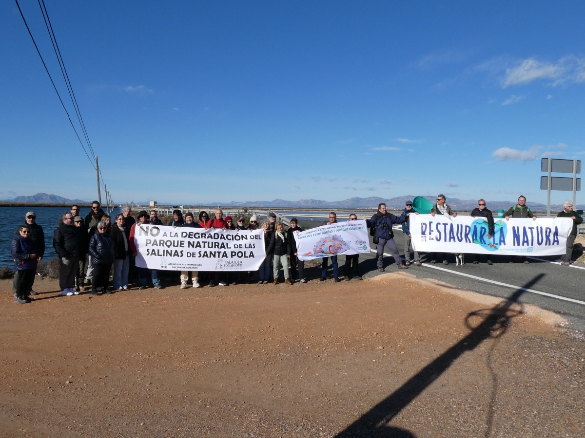 ELCHE. Cerca de 40 personas acudieron, el pasado sábado 7 de febrero, a la celebración de una marcha lúdico reivindicativa para celebrar el día internacional de las zonas húmedas en el Parque Natural de las Salinas de Santa Pola. La actividad estuvo organizada por ocho organizaciones ecologistas del sur del País Valenciano: Amigos de los Humedales del Sur de Alicante, Talaiola – Ecologistes en Acció de Santa Pola, Margalló – Ecologistes en Acció d’Elx, Grupo Ecologista Maigmó – Ecologistes en Acció de Sant Vicent del Raspeig y El Campanà – Ecologistes en Acció de Crevillent, La Carrasca – Ecologistes en Acció d’Alcoi, Colla Ecologista d’Alacant - Ecologistes en Acció y Amig@s de Sierra Escalona ha partido desde Playa Lisa para llegar a través de la costa hasta la desembocadura del río Vinalopó.
