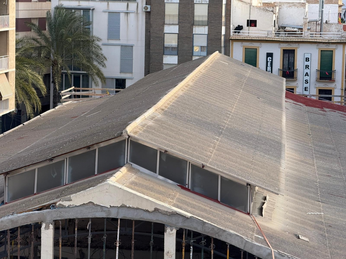 ELCHE. Este lunes han comenzado los trabajos de retirada del fibrocemento en el Mercado Central, una actuación obligatoria y regulada por ley dentro del proceso de rehabilitación del edificio y que está previsto que se prolongue durante alrededor de 3 semanas.