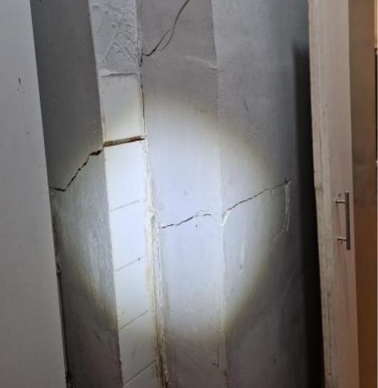 A nivel de estructura, se detectaron en las vigas de hormigón armado pequeñas fisuras esporádicas y una baja calidad del hormigón; en las escaleras centrales del bloque se detectaron deformaciones y fisuras en peldaños, parece que por los muros de carga; y que los elementos estructurales principales del edificio situados en las zonas de los patios y escaleras comunitarias "se encuentran con riesgo de asentamiento y colapso por falta de estabilidad del terrenos".