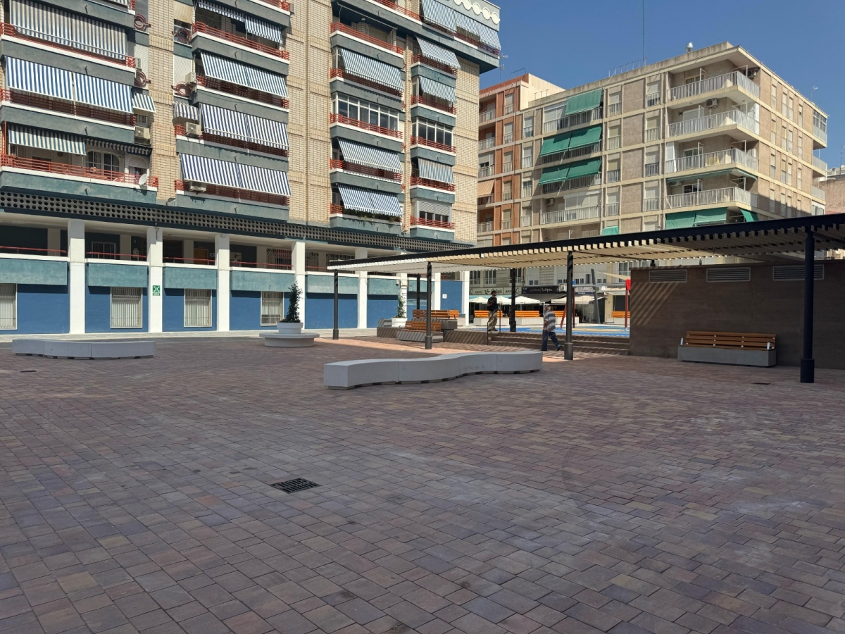 ELCHE. Dos meses después de lo previsto (para mayo originalmente), ya ha finalizado la reforma de la Plaza de los Pisos Azules. La actuación, que ha supuesto una inversión de 744.000 euros, ha renovado el espacio urbano, apostando por medidas de accesibilidad y sombra parcial.
