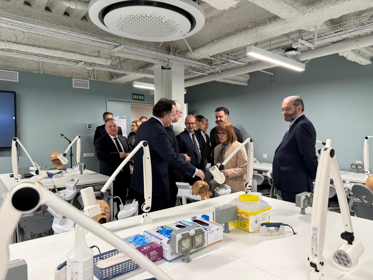 El nuevo edificio cuenta con más de 4.200 metros cuadrados distribuidos en cinco plantas, aulas para más de 60 estudiantes, 20 boxes clínicos para atención de pacientes equipados con las más avanzadas tecnologías, una clínica odontológica, cafetería, terraza y dos patios interiores que aportan luz natural a todas las plantas.