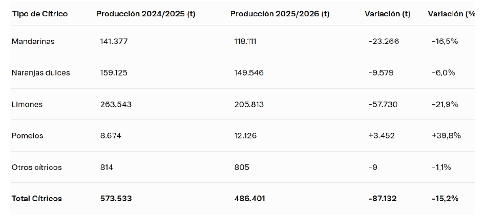 ALICANTE. Desde Asaja Alicante afirman que la citricultura de esta provincia encabeza el descenso nacional de producción en 2025/26, con una merma del 15,2% respecto a la campaña anterior, una cifra superior a la caída de cosecha nacional que ya es la más baja en los últimos 16 años (-10,8%). Las principales causas de dicho desplome en la provincia, según la asociación, "han sido la restricción del riego de hasta un 57% desde el inicio del año hidrológico hasta abril y del 33% desde abril a septiembre por parte de la Confederación Hidrográfica del Segura, y las consecuencias del trips de Sudáfrica, plaga donde Alicante ha sido la "zona cero", impidiendo a los árboles no brotar en verano y ocasionando una floración muy débil en 2025.