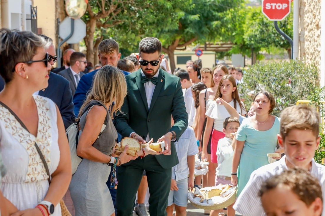 Los festeros preparan una docena de panes que cortan cuidadosamente y reparten casa por casa, acompañados por la banda de música y vecinos del municipio. Es un momento muy esperado, especialmente por las personas mayores, que lo viven con emoción año tras año.