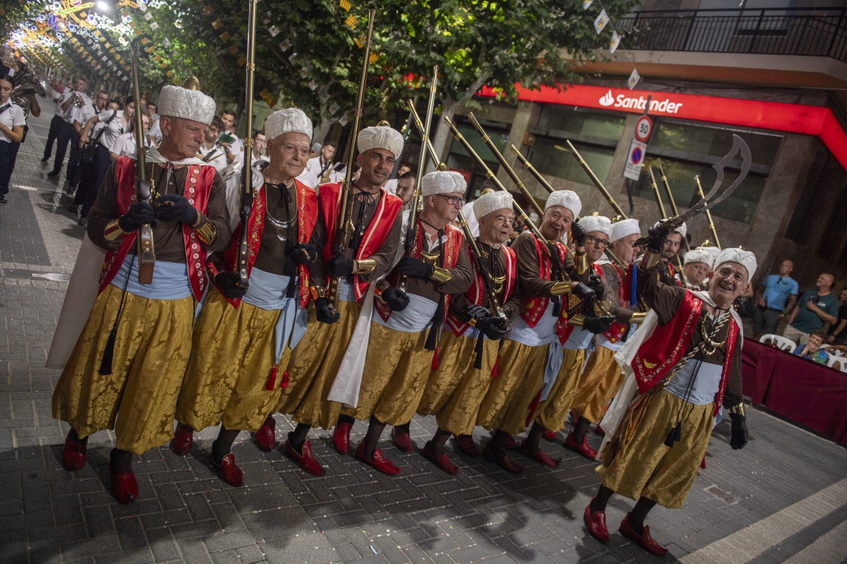 En ese momento, los Festers de l’Any, Julián Cabezos (Pirates-Marinos) e Ismael Miralles “Berlubia” (Moros Vermells), proclamarán el inicio del desfile, en el que todas las filaes lucen sus vestimentas más vistosas, acompañadas por las bandas de música, boatos y carrozas.