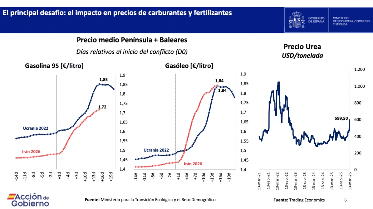 MADRID (EFE). El ministro de Economía, Carlos Cuerpo, ha asegurado este martes que el "mayor reto" que se observa tras el inicio de la guerra en Irán es la evolución de los precios de la gasolina, que han subido un 16%; del gasóleo, un 28%; y de los fertilizantes, entre un 40 y un 50%.