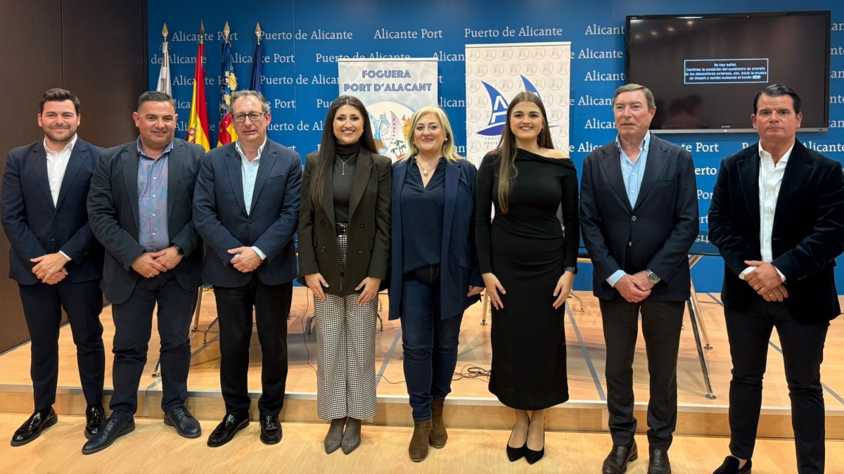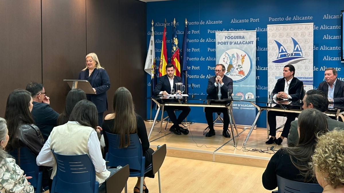 El encuentro celebrado este jueves, 26 de febrero, en el salón de actos de la Autoridad Portuaria, reunió a Mario Flores, expresidente de la institución portuaria y exconseller de Infraestructuras; a Carlos Eleno, actual director de la institución portuaria, y a Raúl Hernández, jefe de División de Seguridad. Junto a ellos participaron la presidenta de la hoguera, Aurora Martínez; el presidente de la Federació de Fogueres, David Olivares; y Adriana Vico, Bellesa del Foc.
