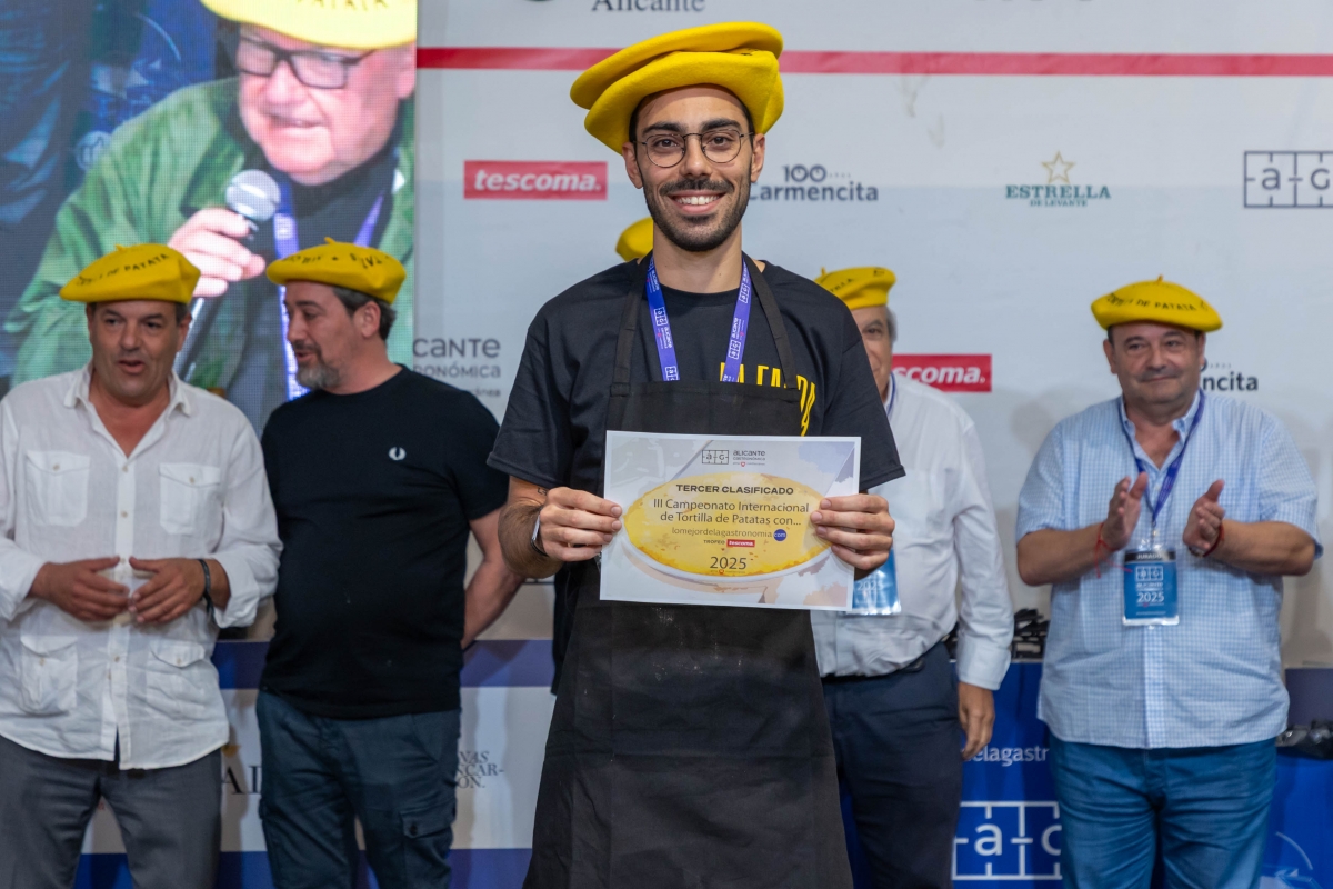 ALICANTE. Ricardo Martín del restaurante Monalisa Gastrobar, en Aranda del Duero, ha logrado el primer puesto en el III Campeonato Internacional de Tortillas de Patatas Con… / Trofeo Tescoma celebrado hoy en la última jornada de la feria Alicante Gastronómica. El ganador ha logrado este primer puesto gracias a su receta de tortilla que incluía entre los ingredientes básicos morcilla y pimiento rojo asado.