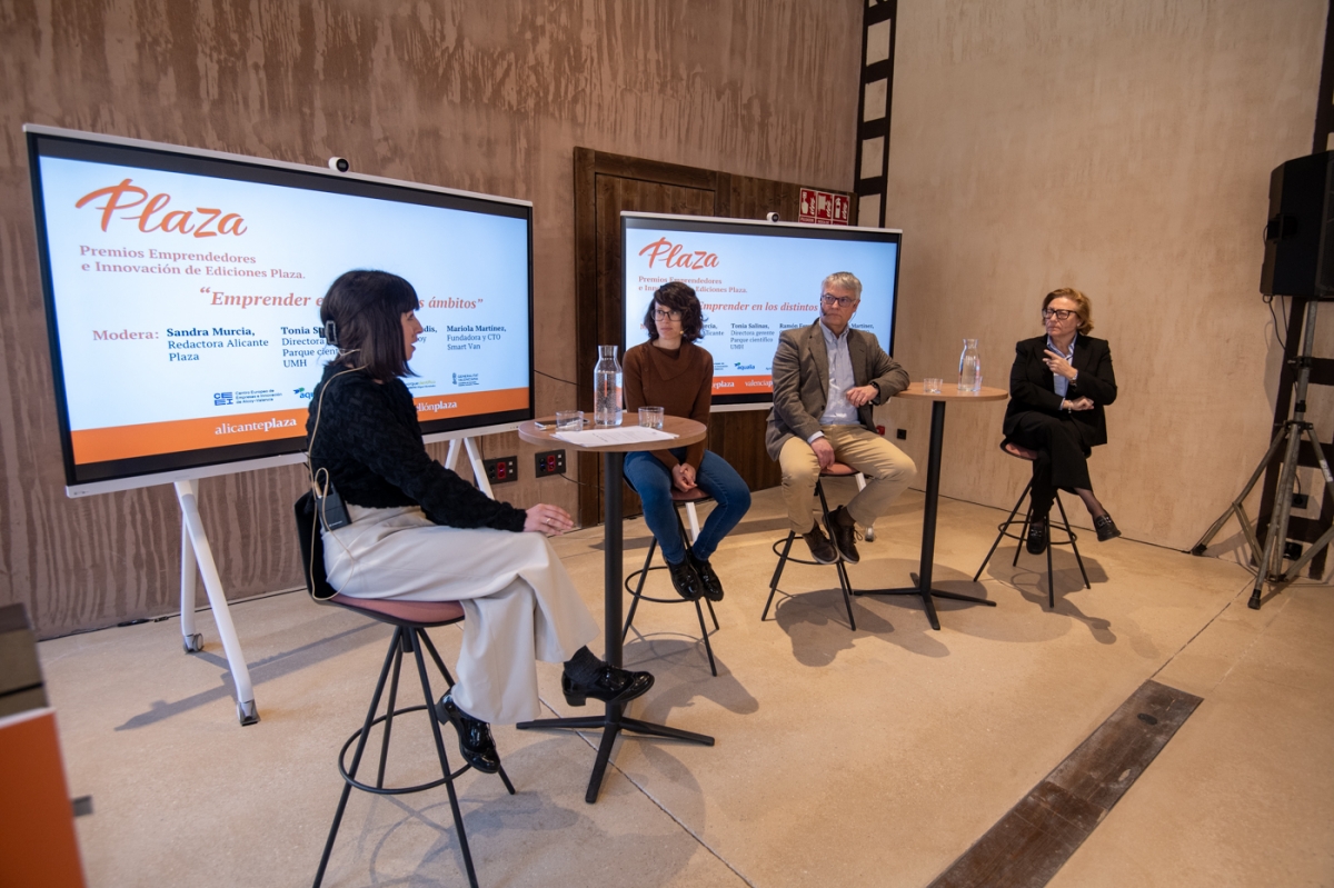 ALCOY. "Hay menos emprendedores, pero son más maduros". Esta ha sido una de las conclusiones de la mesa de debate celebrado este miércoles en Alcoy, dentro de la Gala de los Premios Plaza Emprendedores. La mesa, moderada por la redactora de Alicante Plaza Sandra Murcia, ha contado con la presencia de la emprendedora alcoyana Mariola Martínez, de Smart Van; Tonia Salinas, directora gerente del Parque Científico de la Universidad Miguel Hernández, y de Ramón Ferrandis, CEO del CEEI Valencia-Alcoy.