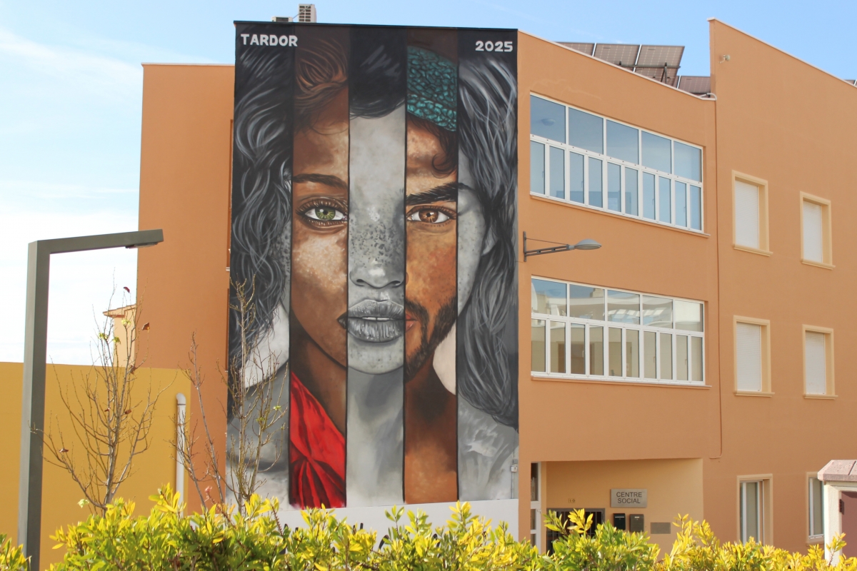 POBLE NOU DE BENITATXELL.- ‘Un poble, moltes mirades. La diversitat ens fa únics’ (Un pueblo, muchas miradas. La diversidad nos hace únicos). Es el lema del espectacular mural que ha pintado el artista Tardor Roselló (Tardor Graffiti) en el lateral de la fachada del Centro Social, Escuela de Música y Escuela de Personas Adultas de El Poble Nou de Benitatxell.