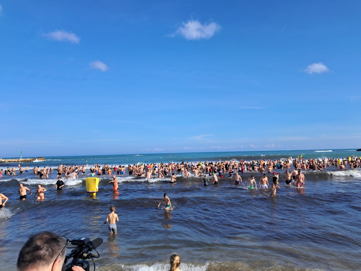 - Unas 200 personas se mojan por tres causas solidarias en la playa del Arenal de Xàbia. -