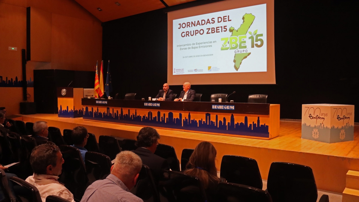 BENIDORM. El Salón de Actos del Ayuntamiento de Benidorm ha acogido este viernes las ‘Jornadas del Grupo ZBE15’, que bajo el título ‘’Intercambio de Experiencias en Zonas de Bajas Emisiones ha contado con representantes de todos los municipios de la Comunitat Valenciana que cuentan con ZBE y que conforman el denominado Grupo15, así como de poblaciones de diferentes regiones españolas. También han asistido representantes de empresas relacionadas con la movilidad y expertos en la materia.