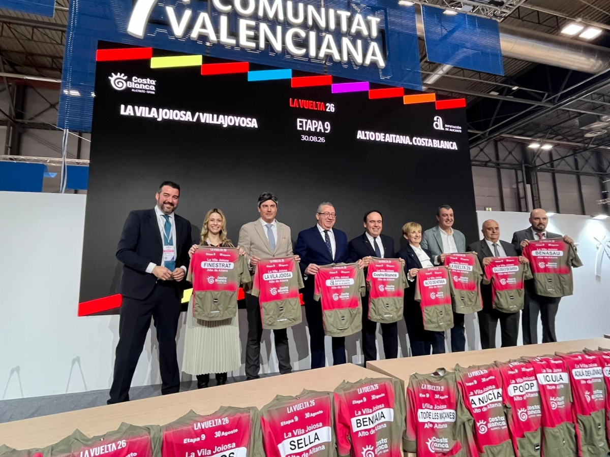 FINESTRAT. La alcaldesa, Nati Algado, participó hoy en FITUR en la presentación de la 81ª Vuelta Ciclista a España que este verano pasa por Finestrat. El acto institucional, celebrado en el stand de Comunitat Valenciana, contó con la presencia del Presidente de la Generalitat Valenciana, Juanfran Pérez Llorca, la consellera de Turismo, Marian Cano, el presidente de la Diputación de Alicante, Toni Pérez, el director del Patronato de Turismo Costa Blanca, José Mancebo y alcaldes de las localidades por las que pasa esta etapa como Marcos Zaragoza, de La Vila Joiosa.
