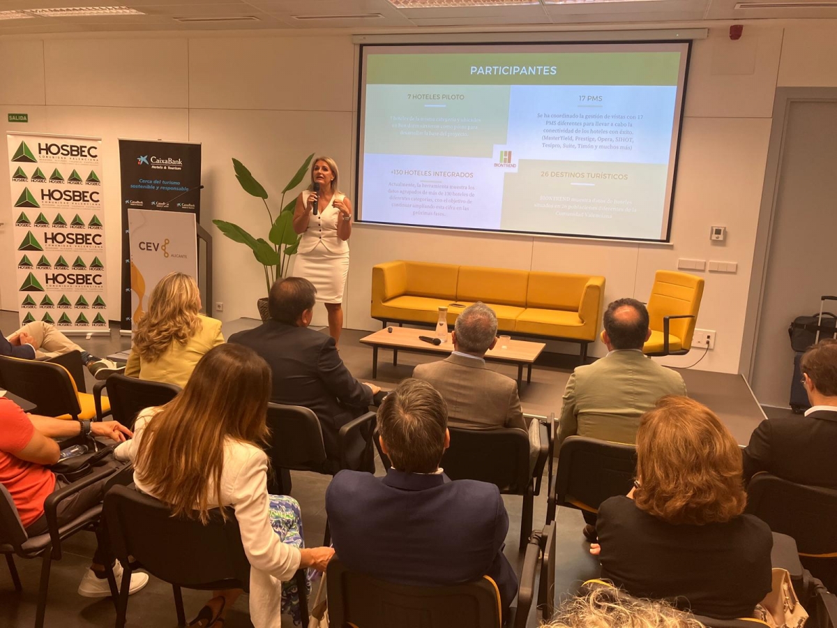 HOSBEC ha presentado en tiempo real la usabilidad de su herramienta Biontrend en la que se vuelcan los datos actualizados a las 0:00hs de cada día y las perspectivas a 365 días vista. La secretaria general de HOSBEC, Nuria Montes, ha realizado un repaso por las principales variables que permite este cuadro de mando y cuáles son las previsiones que los datos y la IA arrojan sobre los próximos 365 días del sector. Son éstas: