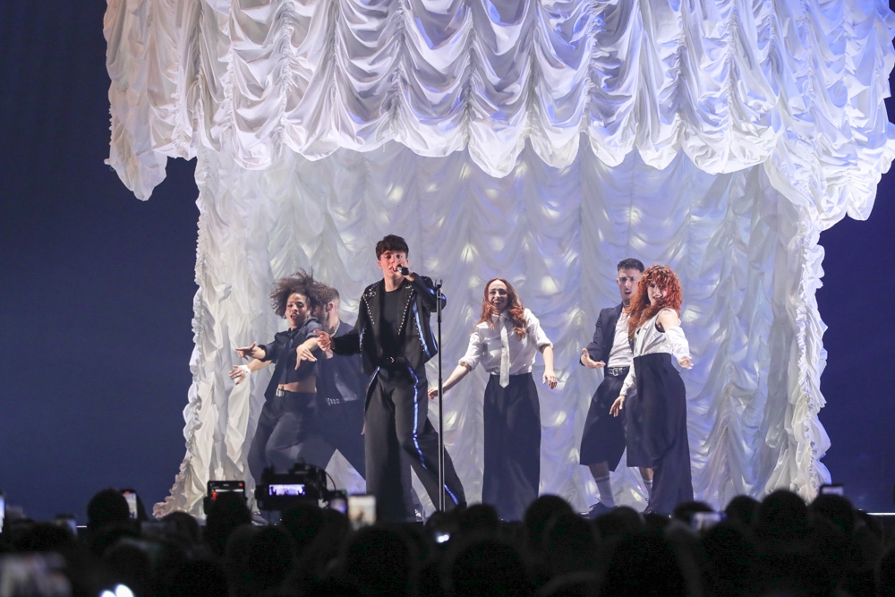 El quinto en actuar fue Izan Llunas con ¿Qué vas a hacer?, en una puesta en escena marcada por un gran telón blanco del que iban emergiendo los bailarines. El joven artista —conocido también por interpretar a Luis Miguel de niño en la serie— brilló especialmente en los agudos, ejecutados con solvencia.