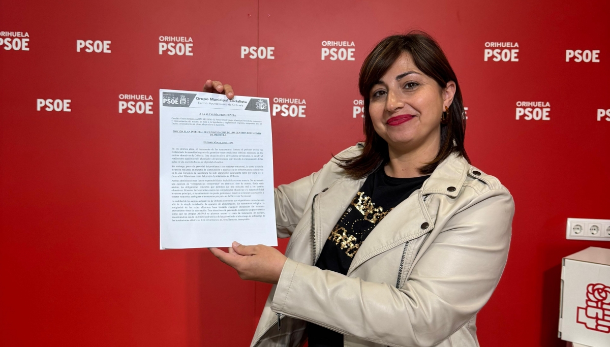 ORIHUELA. El Grupo Municipal Socialista de Orihuela ha presentado una moción para impulsar un plan integral de climatización en los centros educativos del municipio ante el aumento de las temperaturas durante el curso escolar. La formación reclama una respuesta conjunta entre el Ayuntamiento y la Generalitat Valenciana para mejorar las condiciones térmicas en aulas y dependencias escolares.